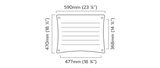 - Exterior: 23.25x18.5" (WxD)